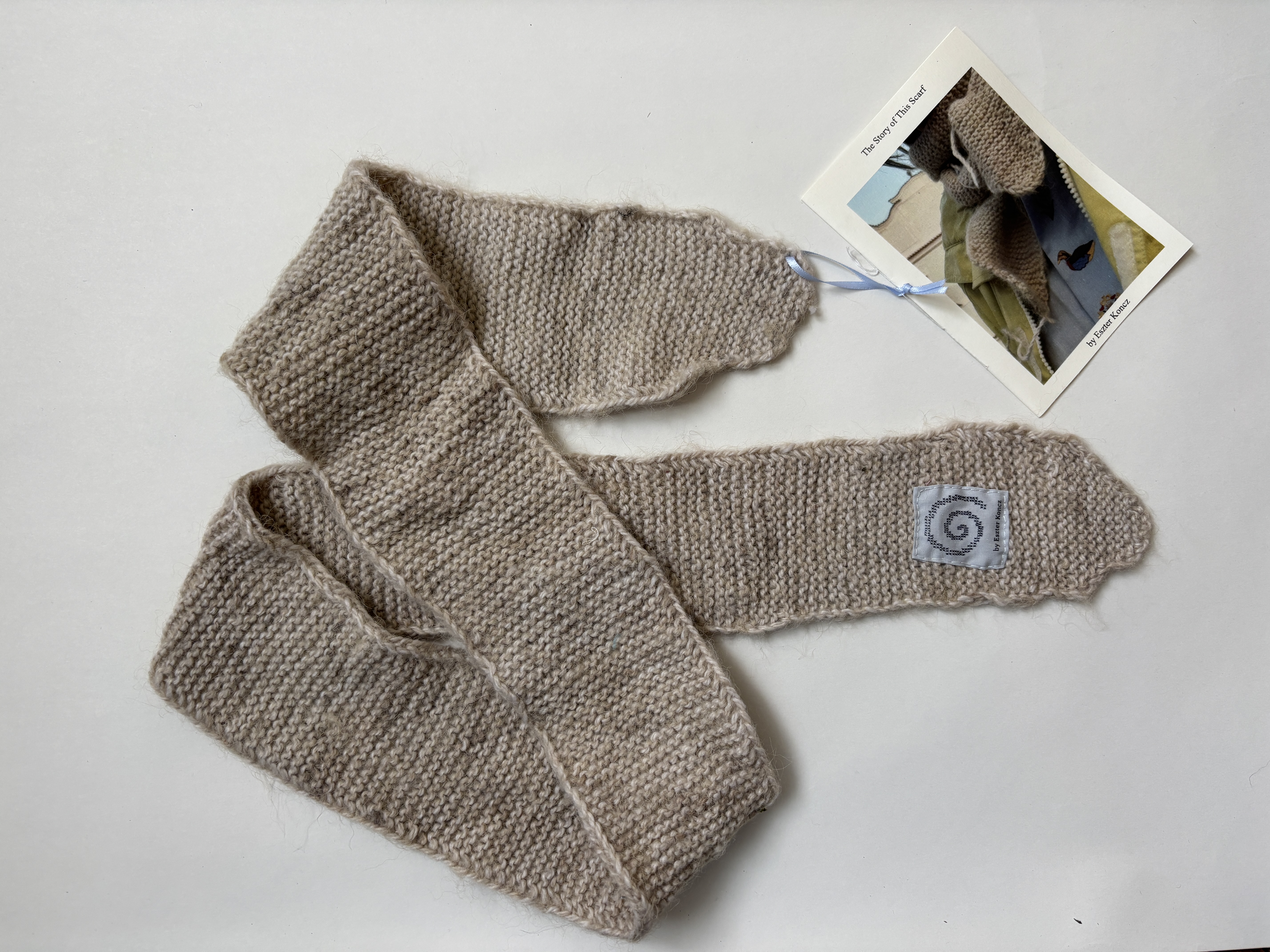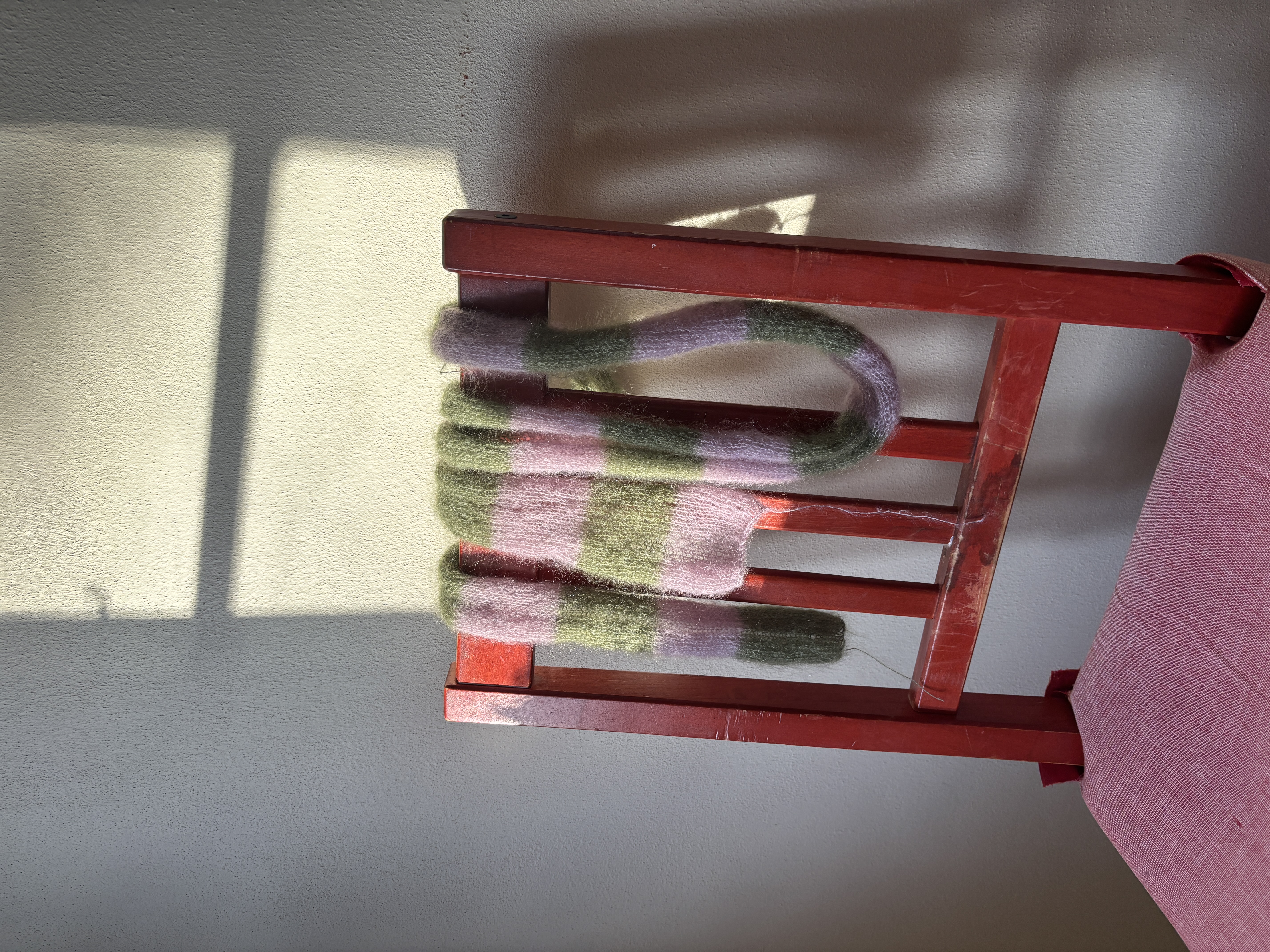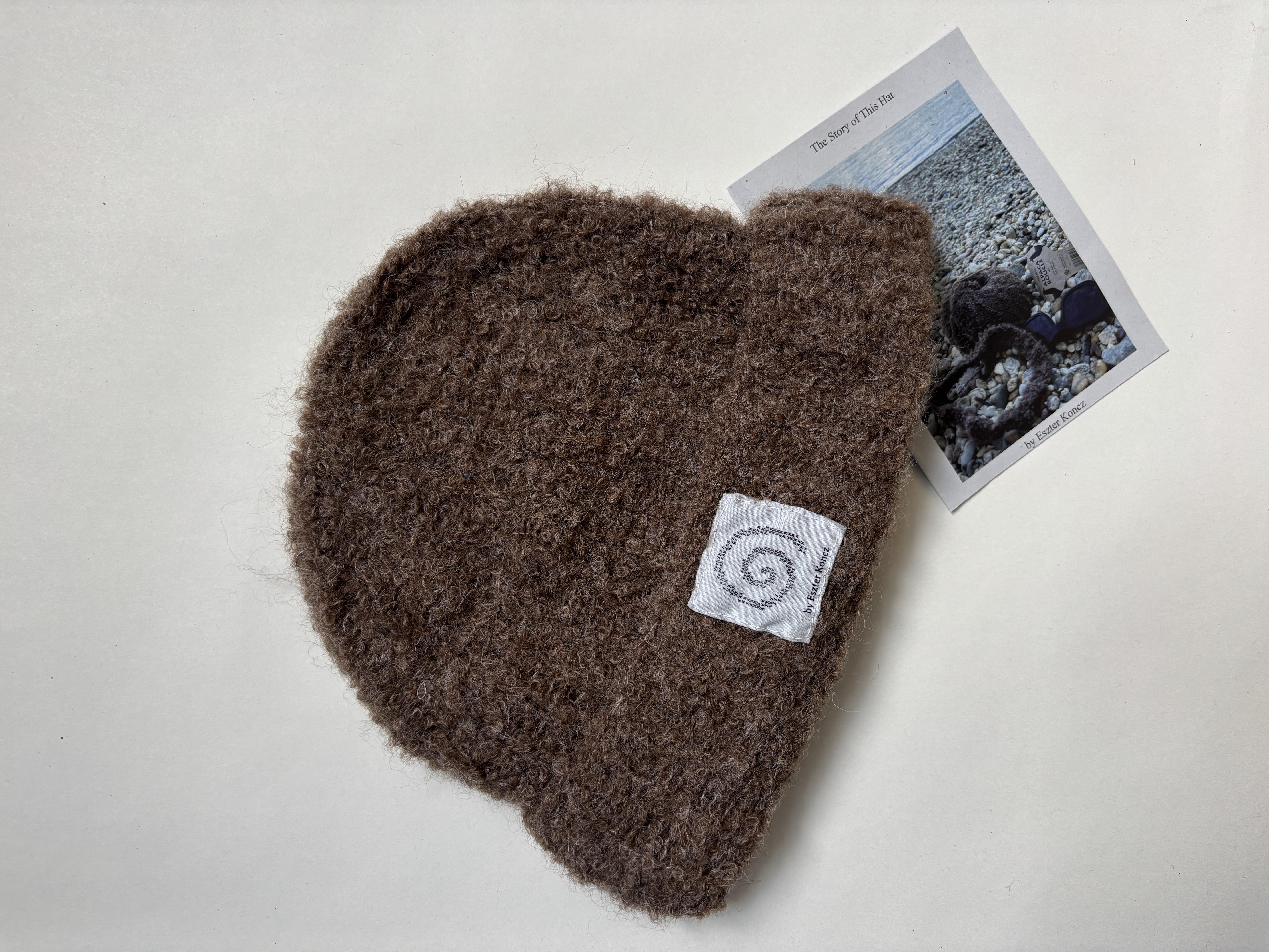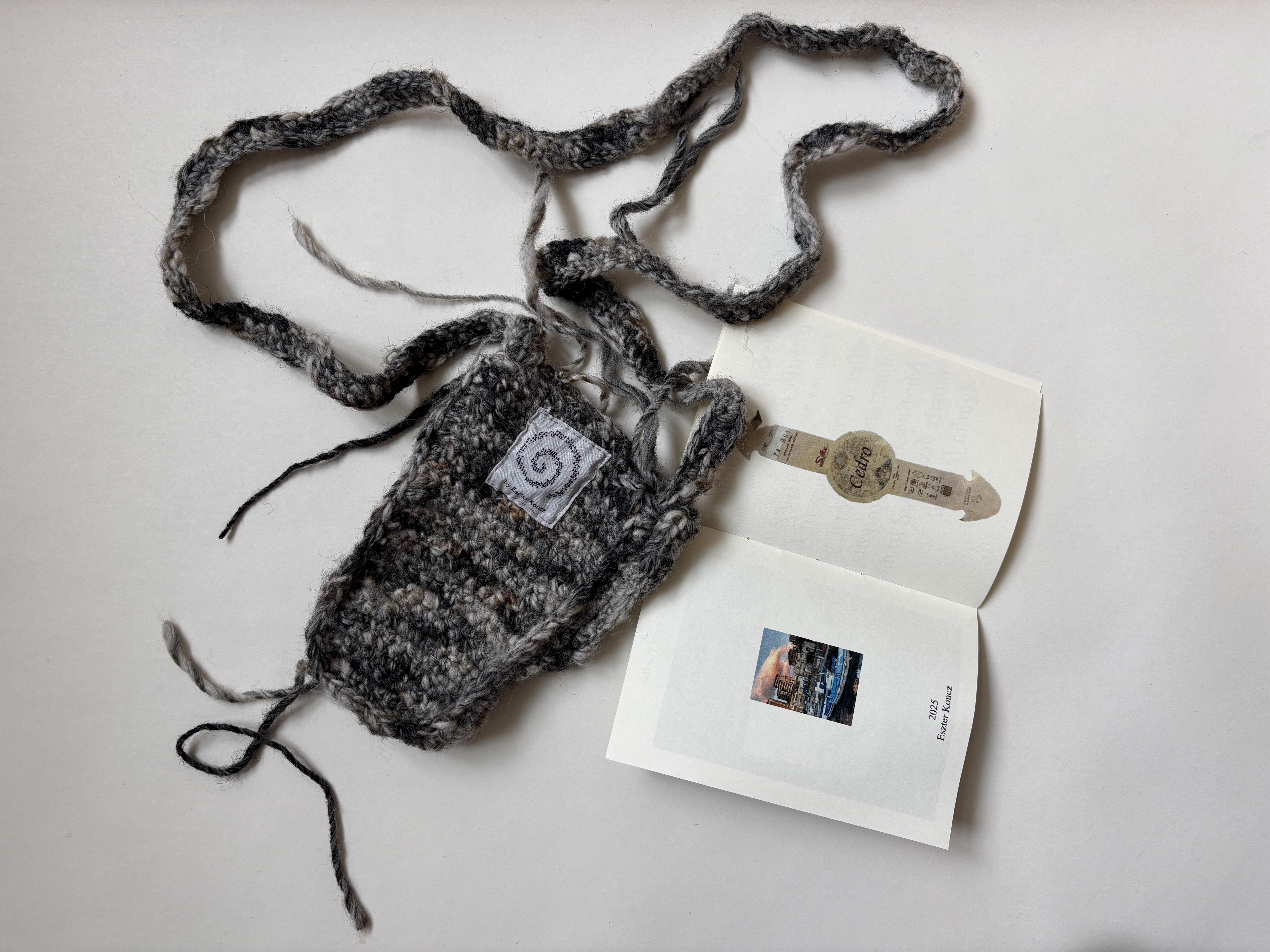 Knitting while walking, while talking, while reading, while daydreaming, while watching a movie, while watching the landscape pass by in the train’s window. I've been knitting since I was a child: I learned from my mother, who learned from her mother, and so on. I live far from home now, still, my hands continue the well-known choreography: click, clack, click ~ knitting becomes a way to measure time, turn it into shapes. I try to encapsulate these stories into the objects I make: when you purchase an item, you'll receive a little booklet containing the journey from this object from the yarn to your hands.