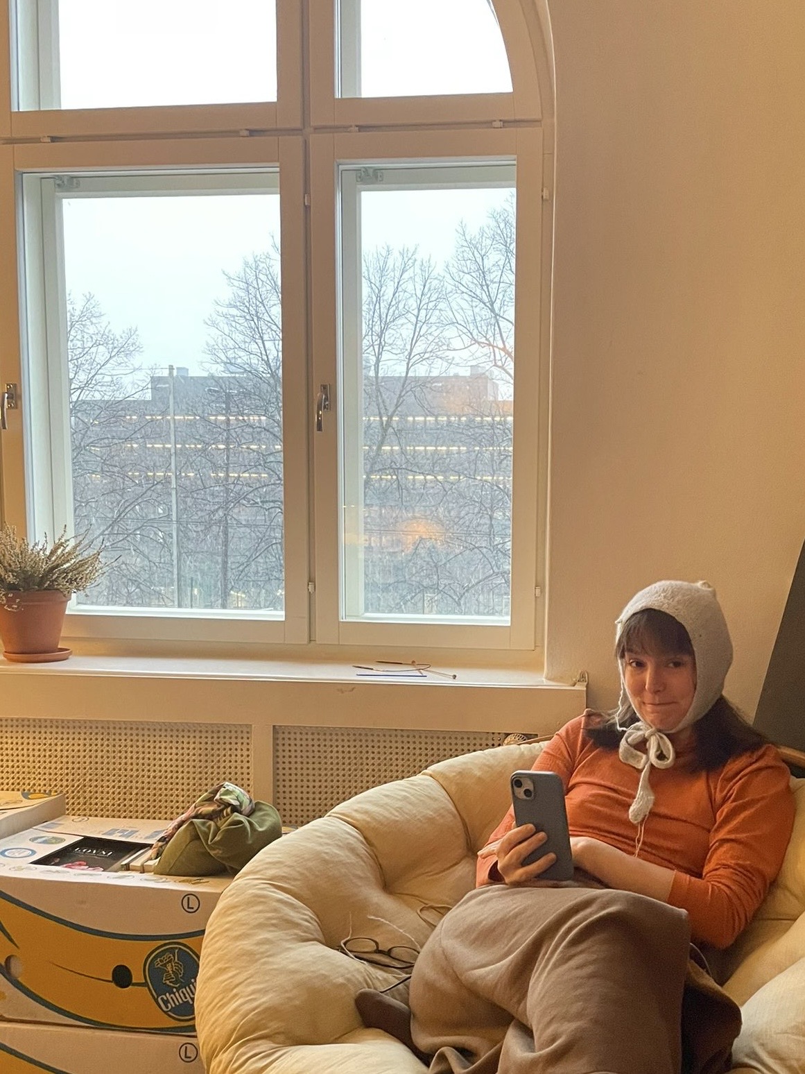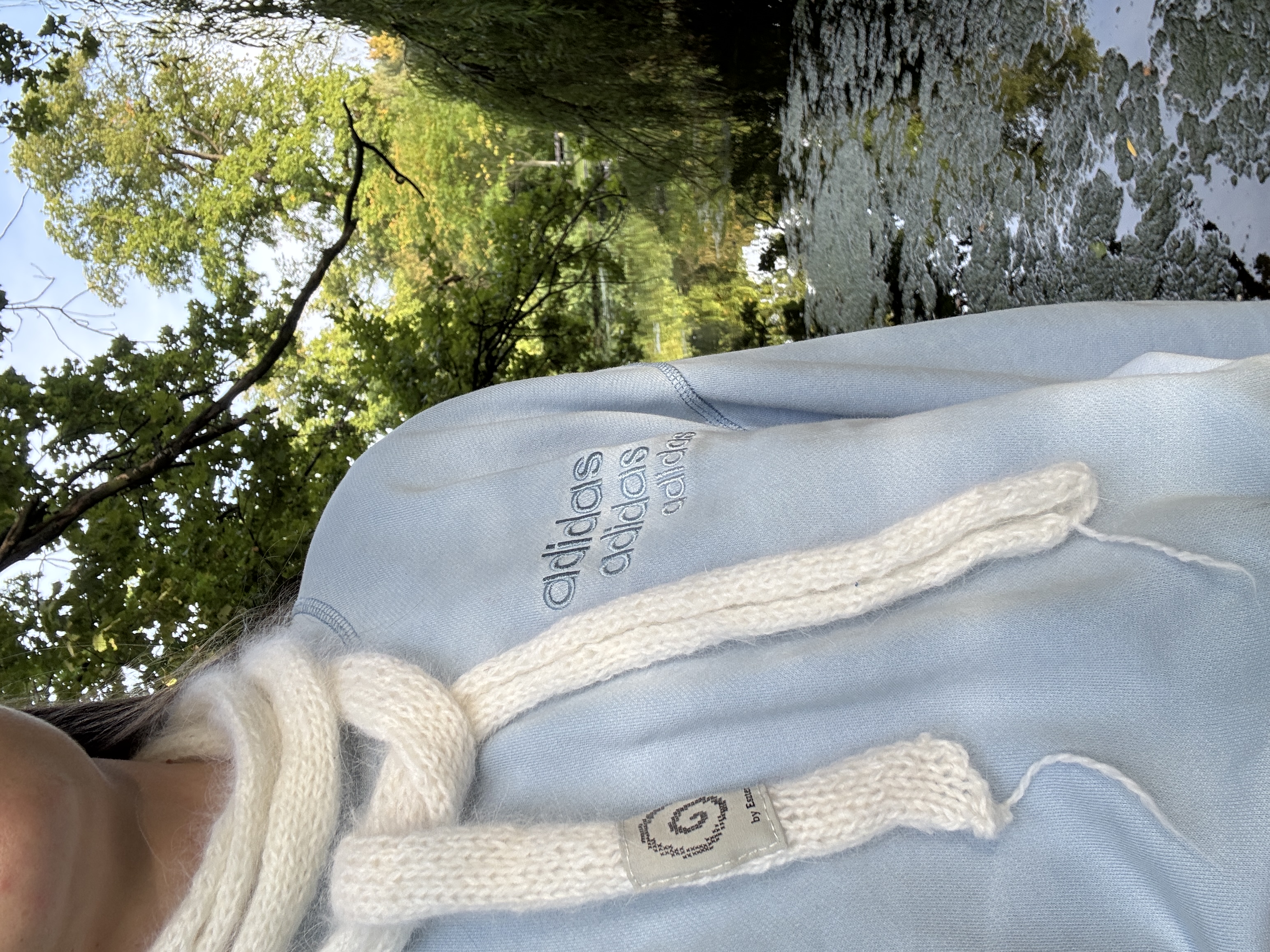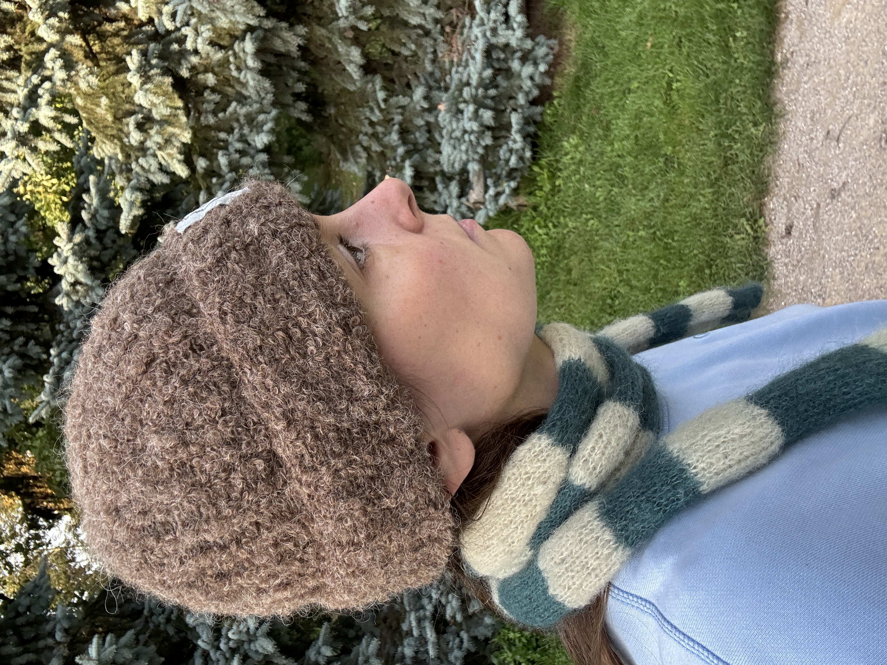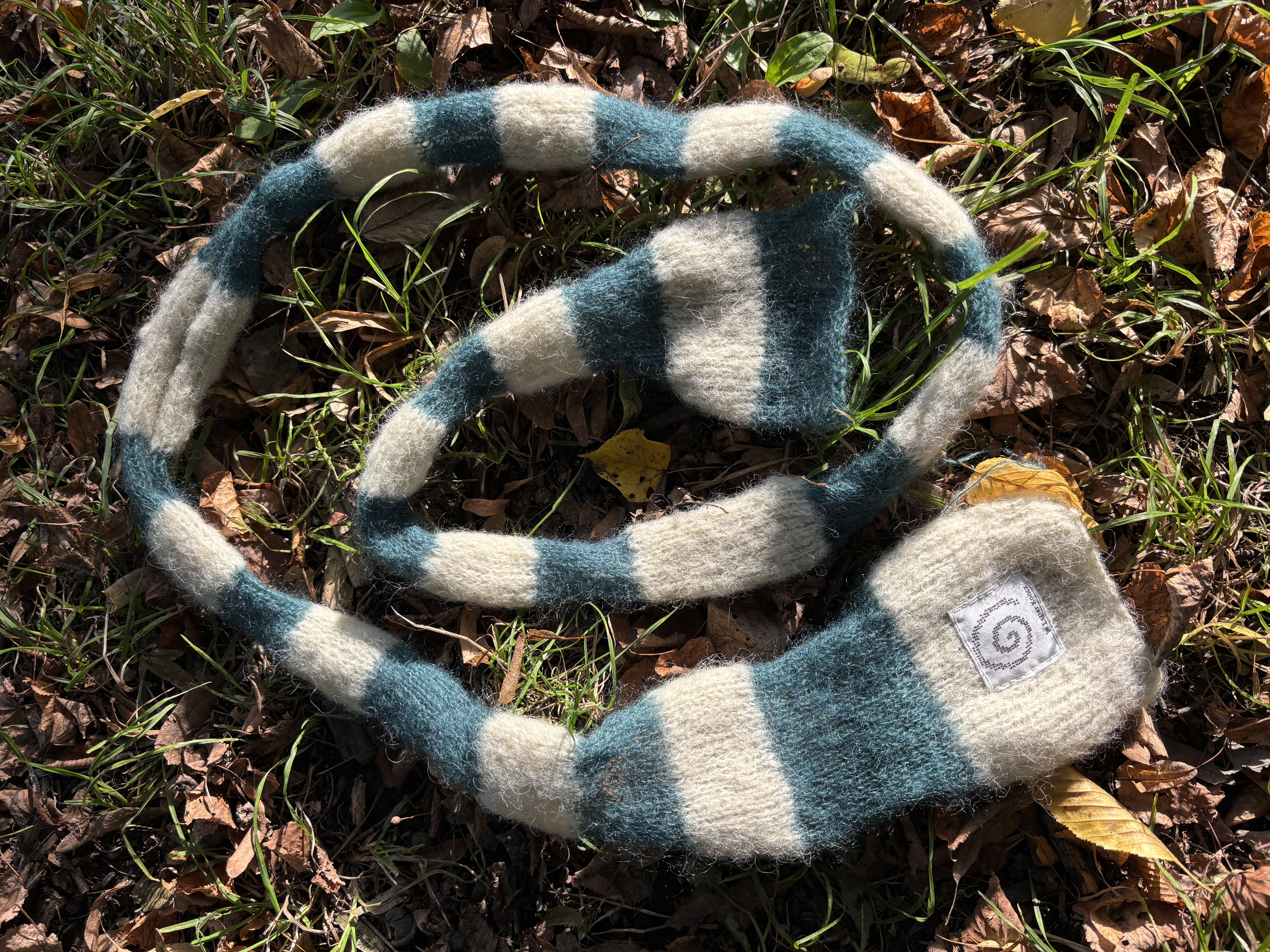 Knitting while walking, while talking, while reading, while daydreaming, while watching a movie, while watching the landscape pass by in the train’s window. I've been knitting since I was a child: I learned from my mother, who learned from her mother, and so on. I live far from home now, still, my hands continue the well-known choreography: click, clack, click ~ knitting becomes a way to measure time, turn it into shapes. I try to encapsulate these stories into the objects I make: when you purchase an item, you'll receive a little booklet containing the journey from this object from the yarn to your hands.